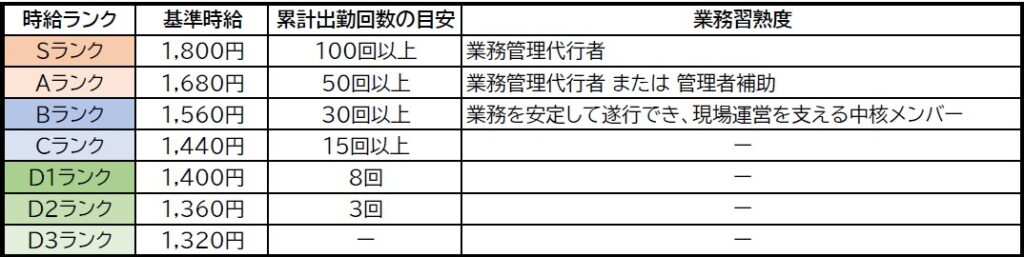 時給ランクは、アルバイトの皆さんの役割や期待値を示す指標であり、