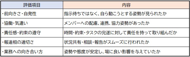 仕事への姿勢・協働・責任感などの行動特性を評価します。